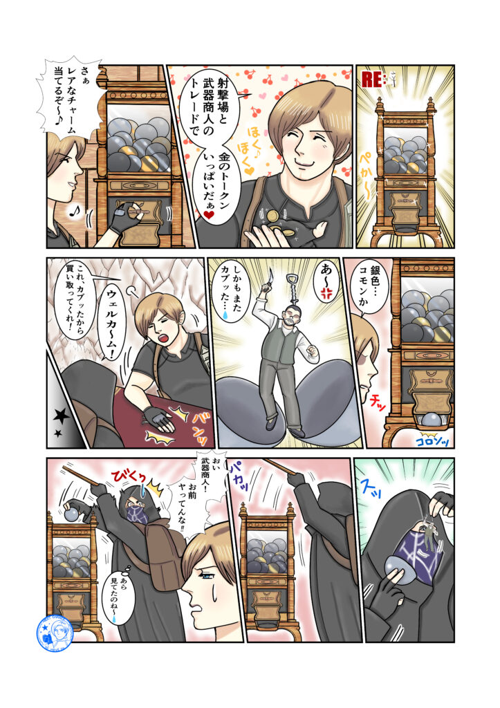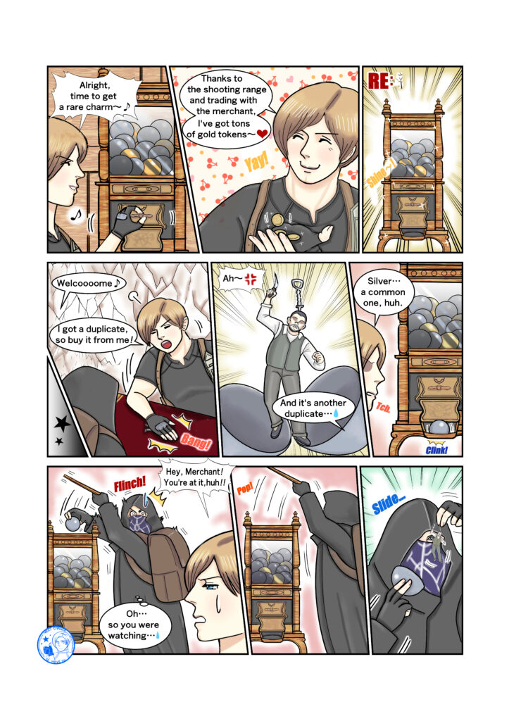 The merchant buys back the charms and quietly puts them back into the gacha, letting Leon pull them again.