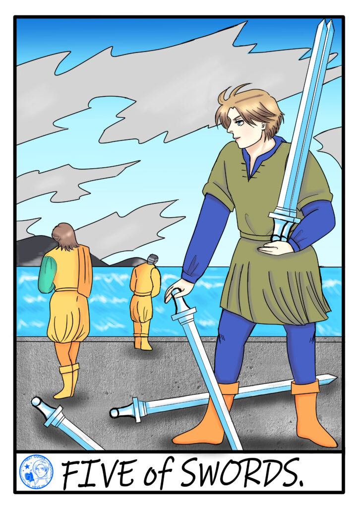 ソードの5は、安定した場所から…より発展するために、論争や口論をした結果…争いになることが描かれています。