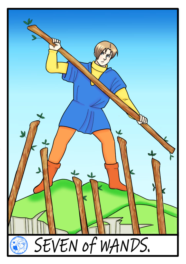 Seven of Wands…Just as a week is made up of seven days, the number ‘7’ represents the completion of a cycle.