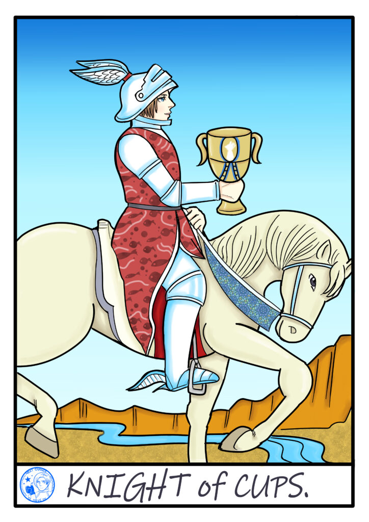 The Knight of Cups…The Knight literally represents a knight and belongs to the element of Air.