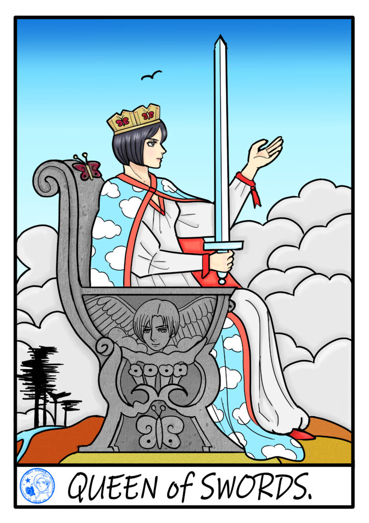 ソードのクイーンが今までの経験で得た悲しみや困難が、高い知性へと変化しているのです。
