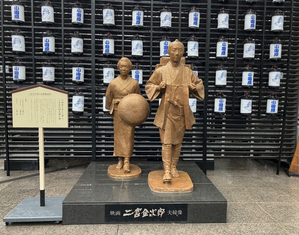 そこの外にあるフードコートには、小田原出身の偉人・二宮金次郎の像が飾られています。 (奥さんとの2SHOT像💧)