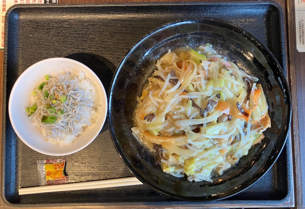 皿うどんとしらすごはんのセット♪