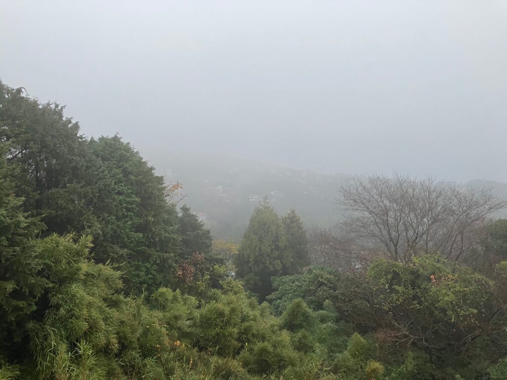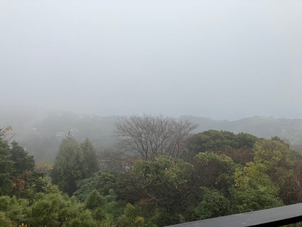 天気が悪くて霧のせいで、湯船からの景色がほとんど見えなかったから💧