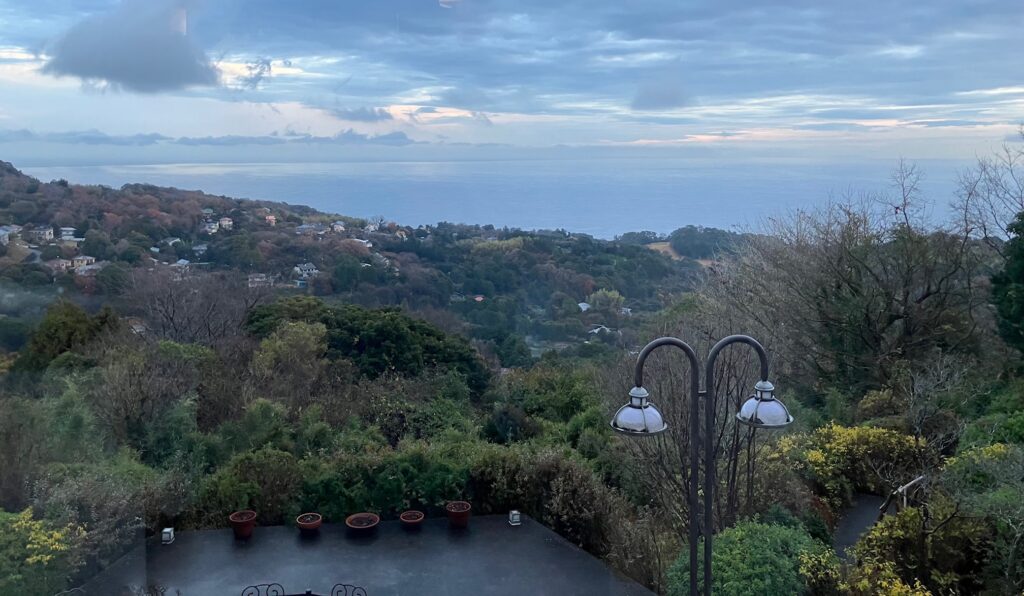 これにゆっくり浸かって、川奈の景色が一望できるのですが…。