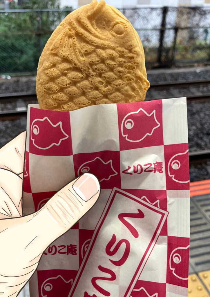 電車内のおやつとして…くりこ庵の「クリームたい焼き」も購入♪