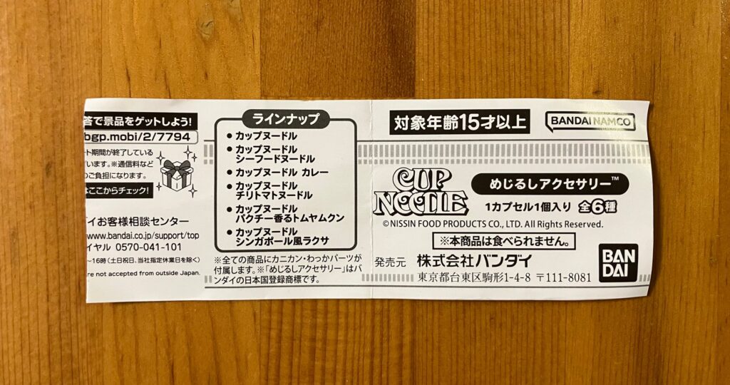 今週は、めじるしアクセサリーCUP NOODLEのガチャです♪