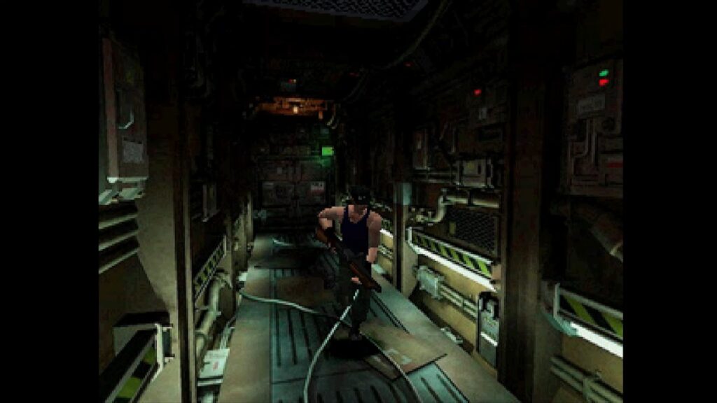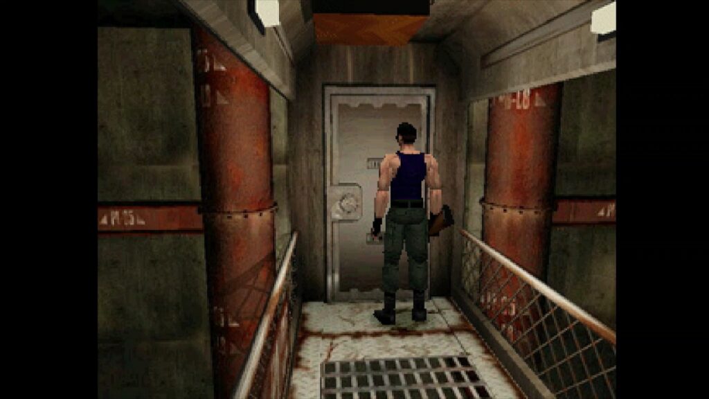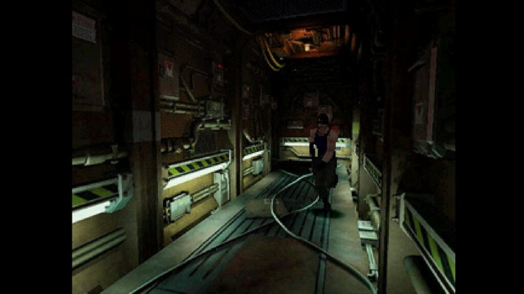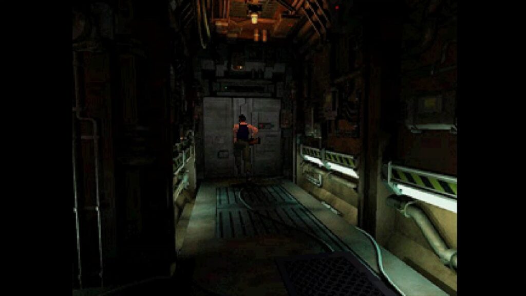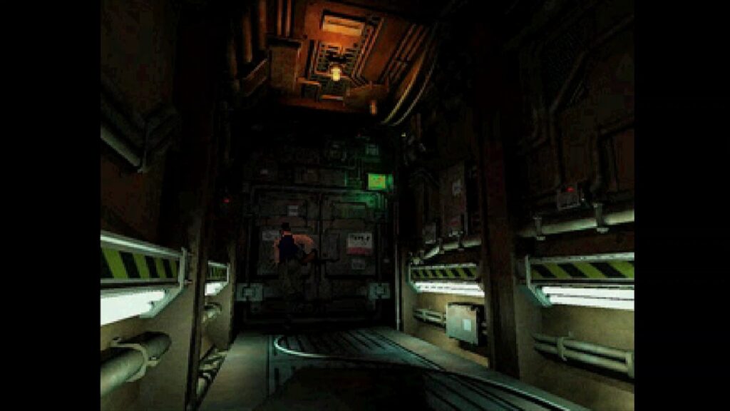 ↑この通路の前後に行けるドアがありますが、後ろ側はエレベーターのドアで電源が入ってないので乗れず、前側の通路に進みました。