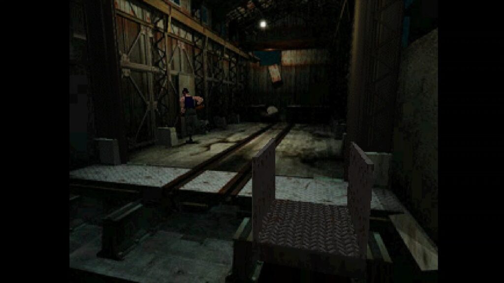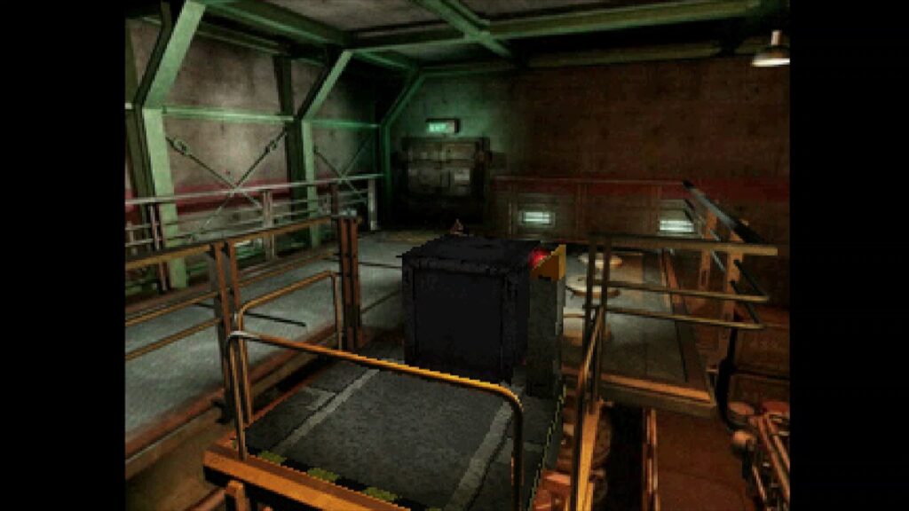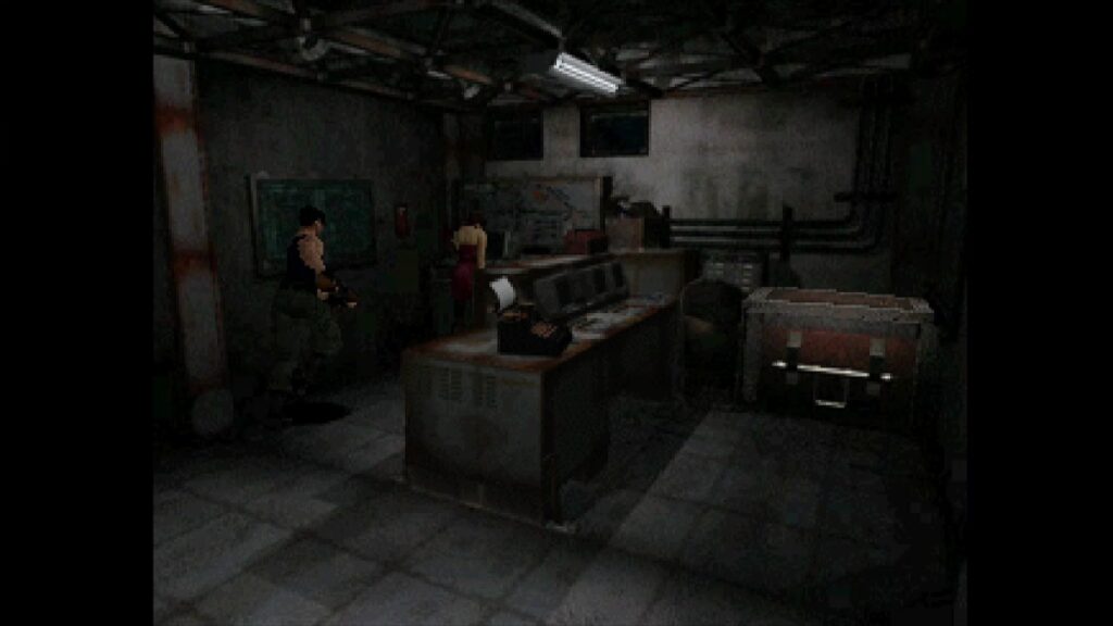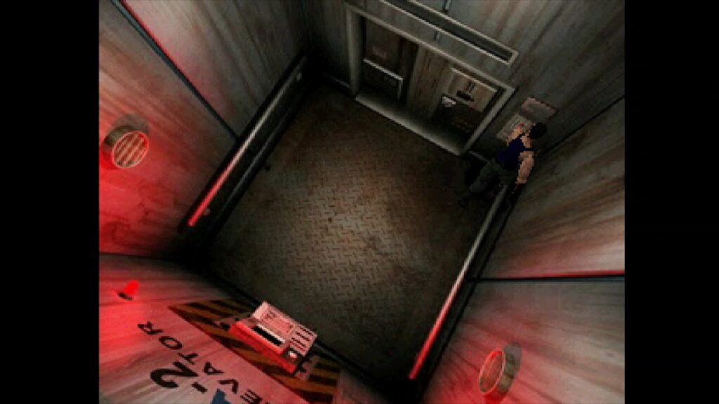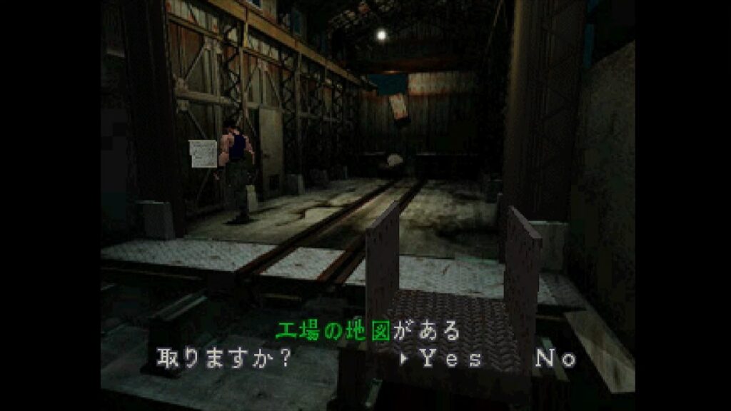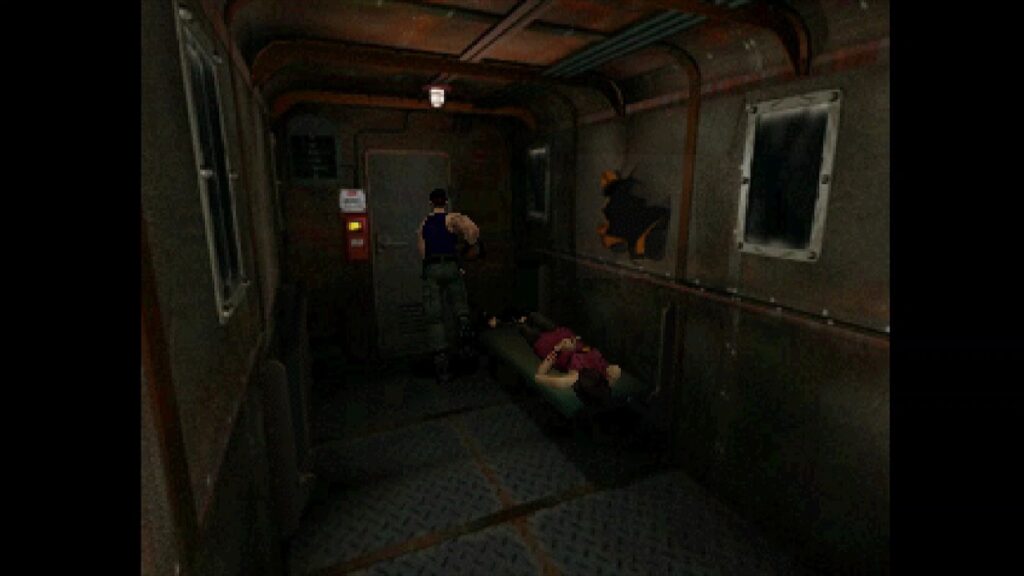ロープウェイに乗って、仲良く工場入口のセーブ部屋に辿り着いたレオンとエイダ。