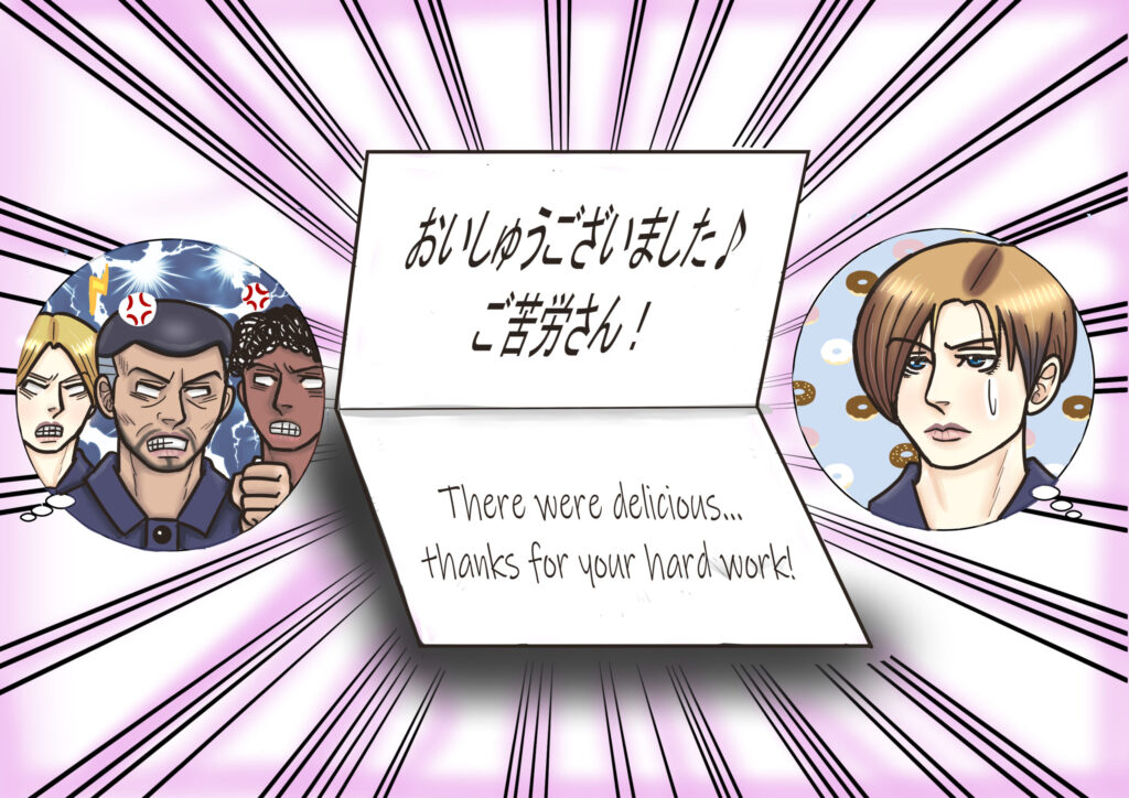 それには〈おいしゅうございました…ご苦労さん!〉の文字が💧