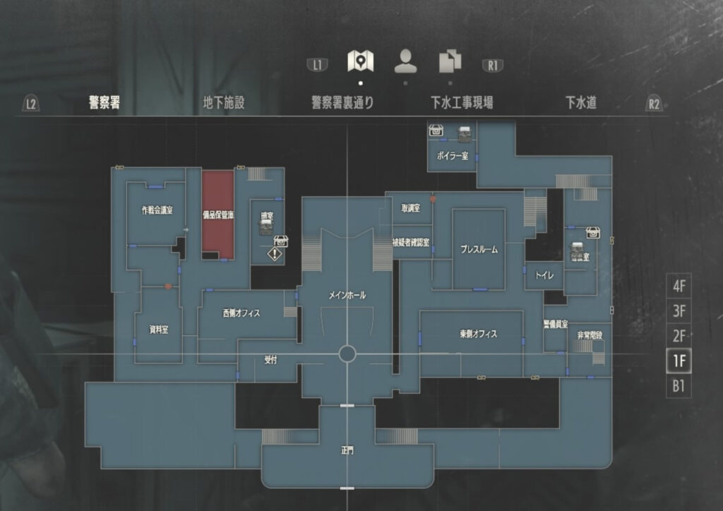 (ゲームのRE:2で〈WELCOME LEON〉の垂れ幕が飾られていた部屋ですね♪)