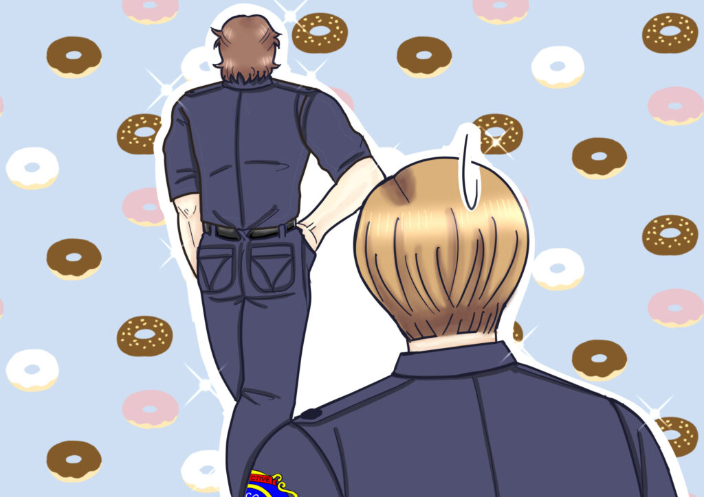 …パトロール中に寄ったドーナツ屋さんが、いつもの巡回のお礼としてドーナツをくれたんです。