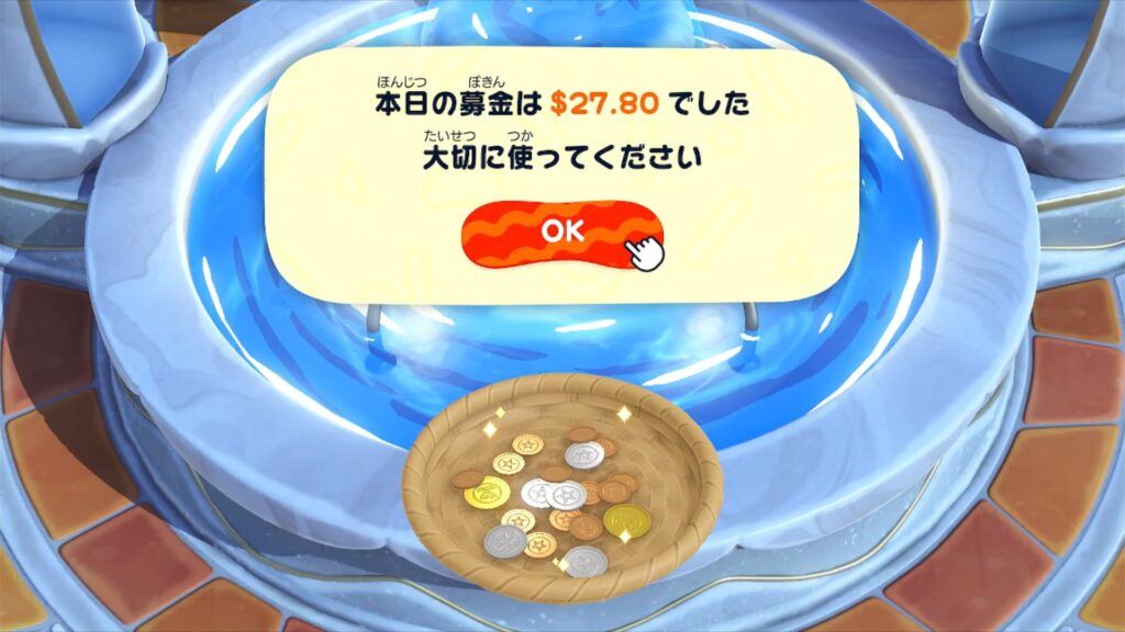 毎日、「願いの噴水」行くと、島の住人たちからの募金がもらえます![]()