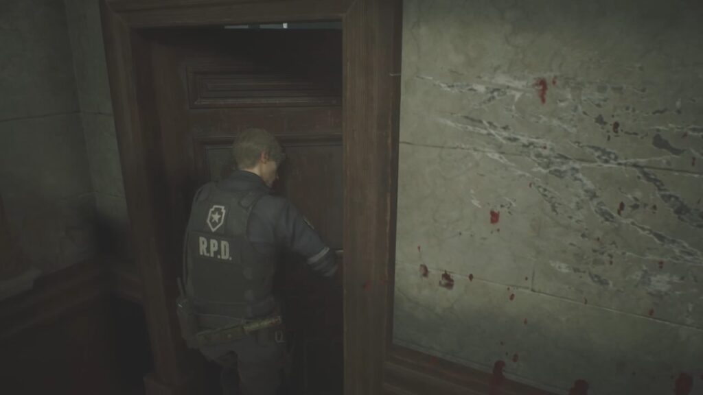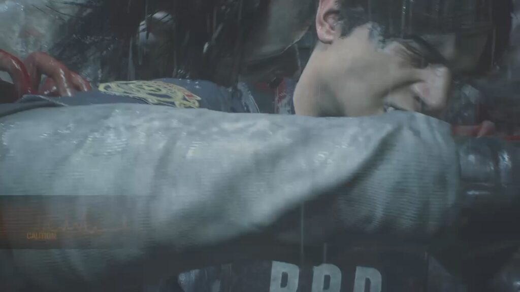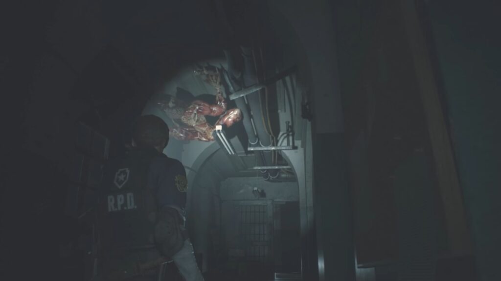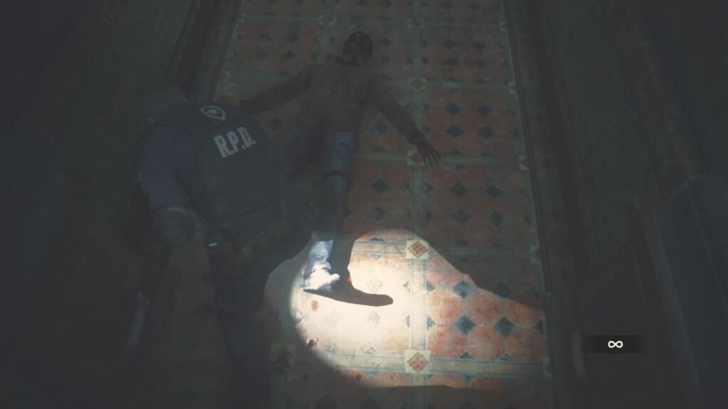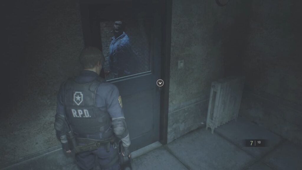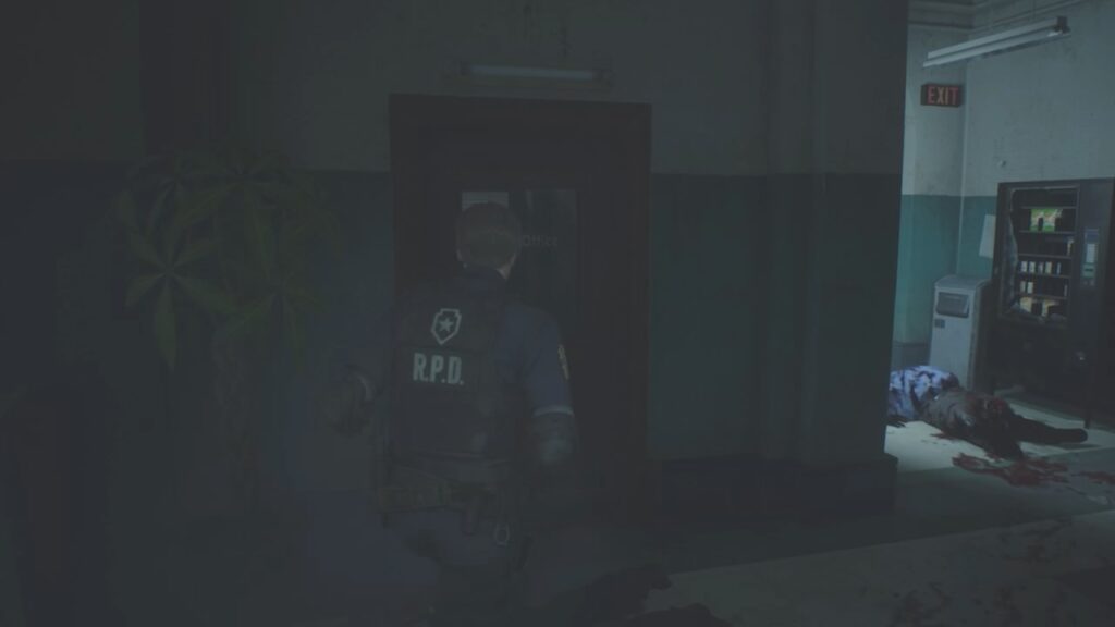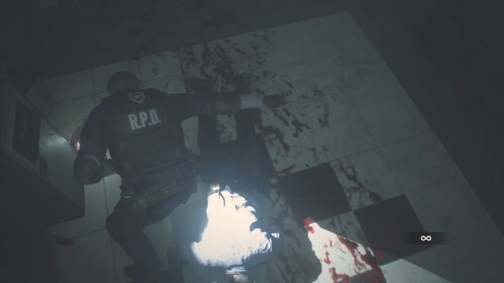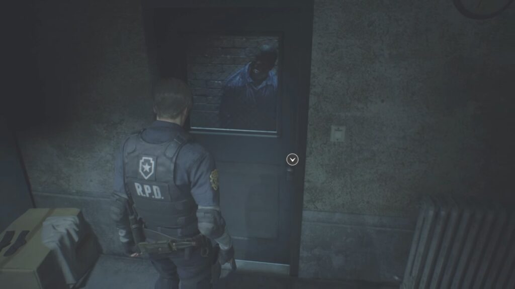 ゾンビの強さに圧倒され、ここまで辿り着いたレオン。