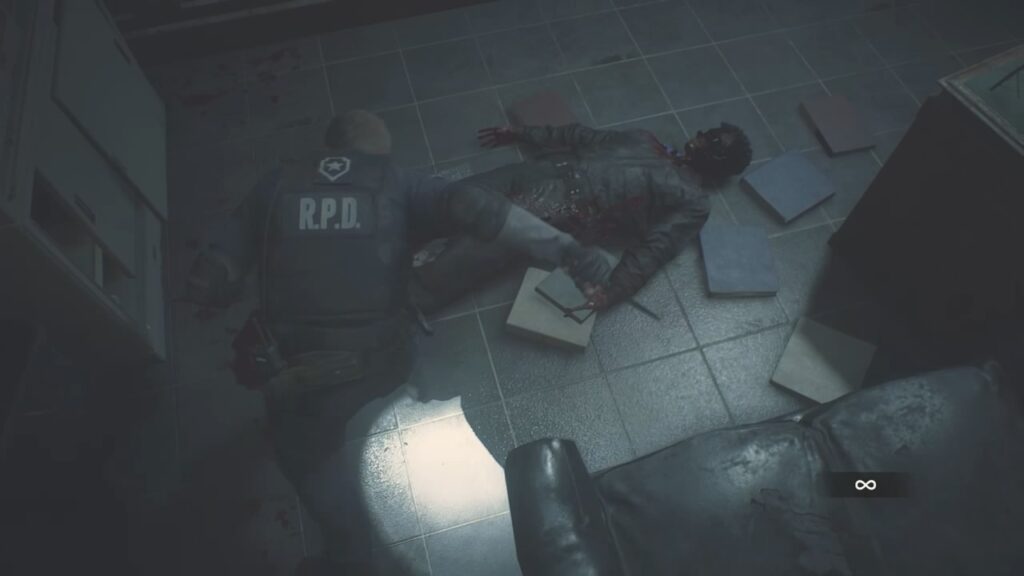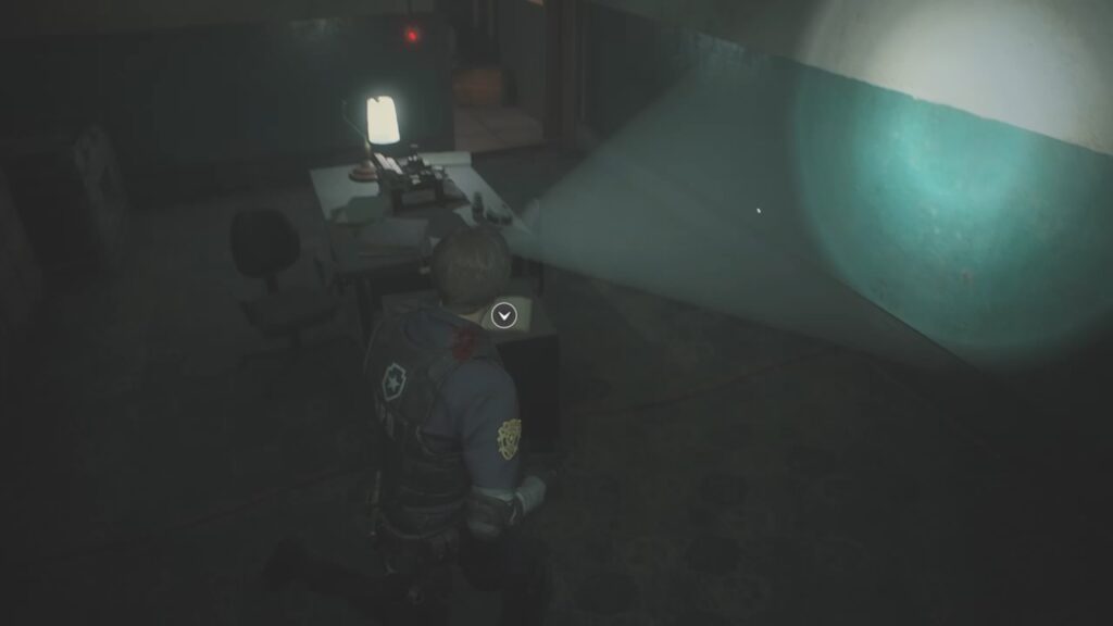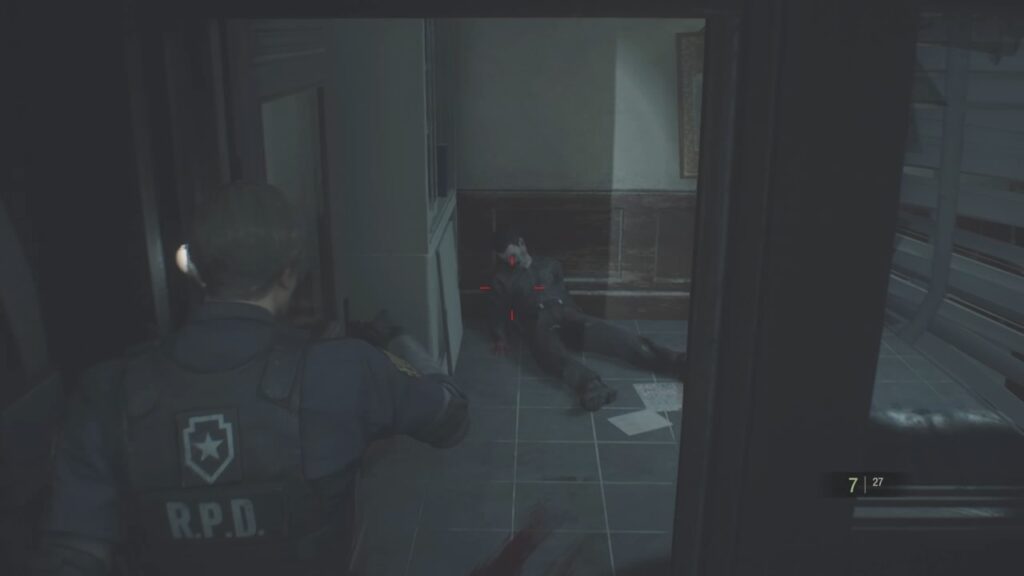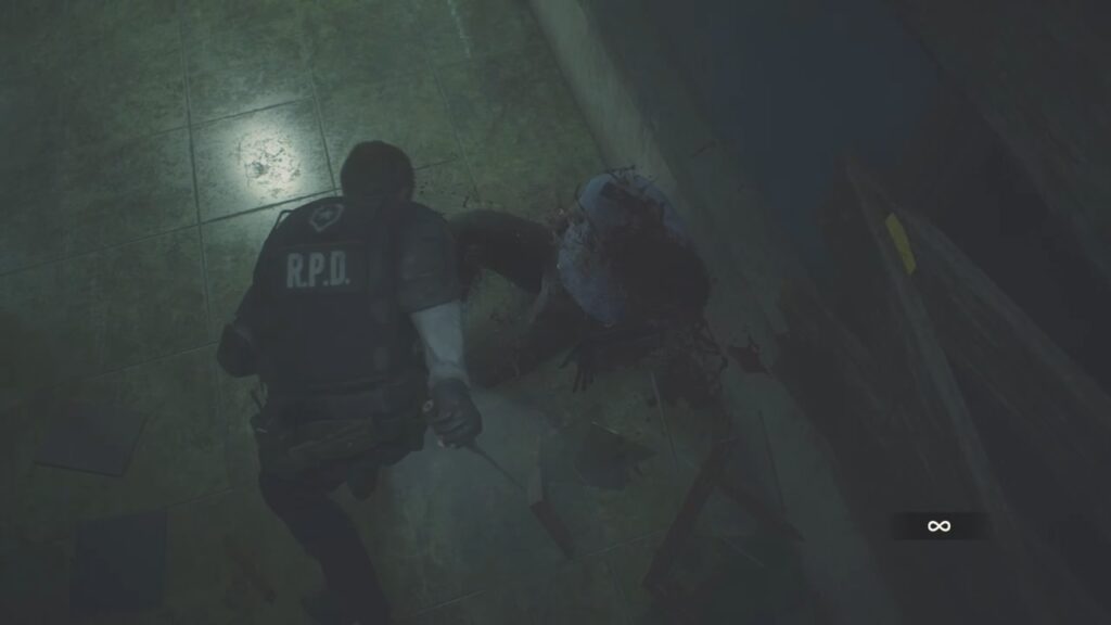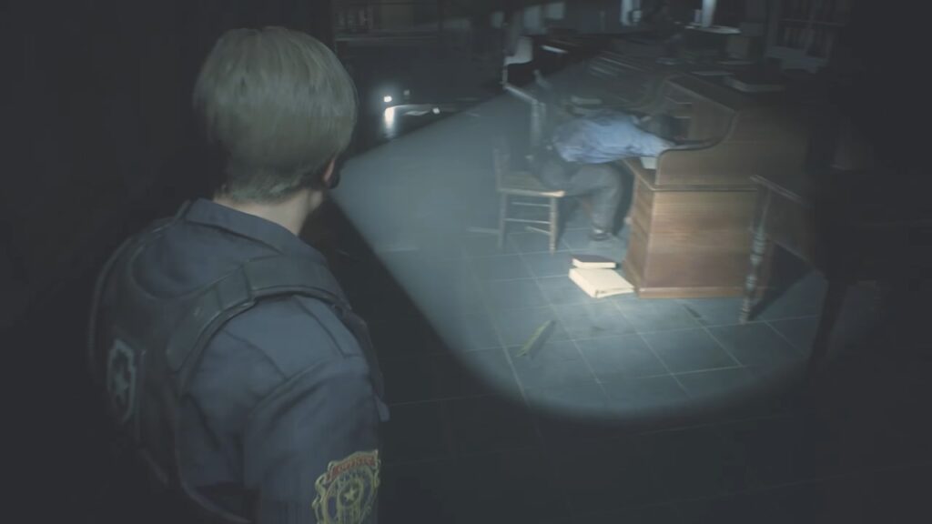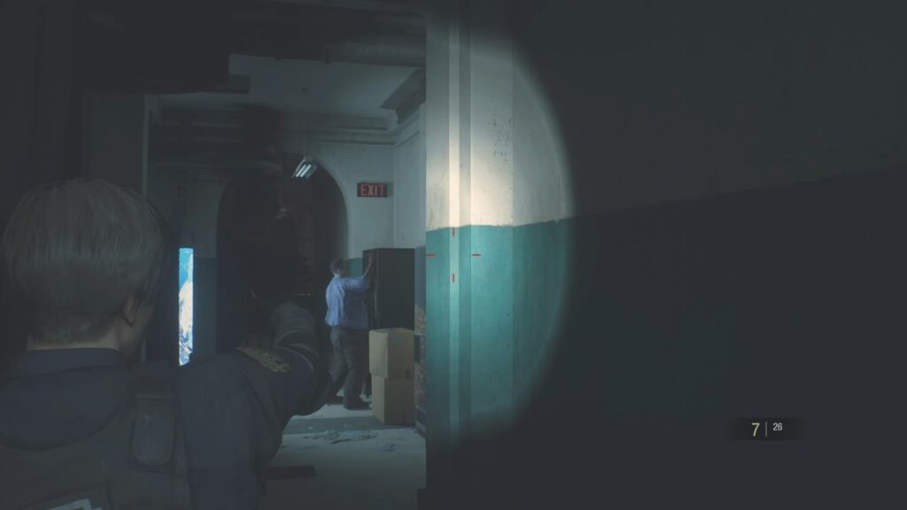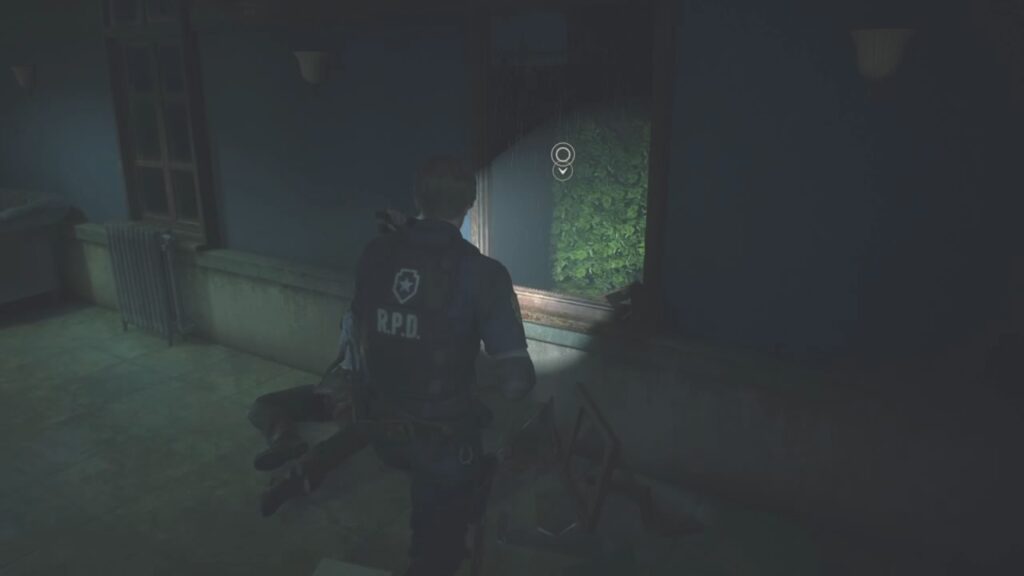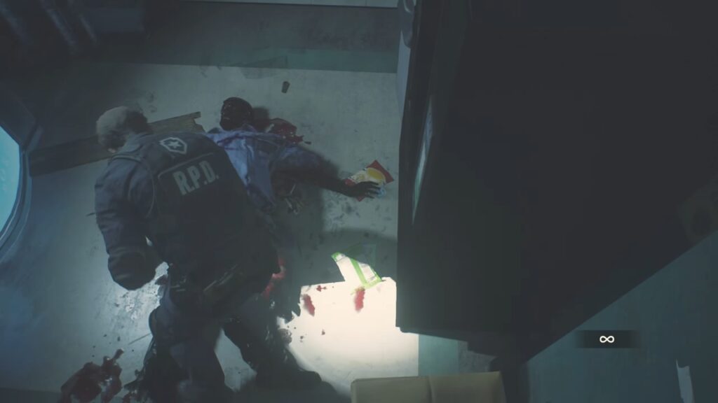 ゾンビの強さに圧倒され、ここまで辿り着いたレオン。