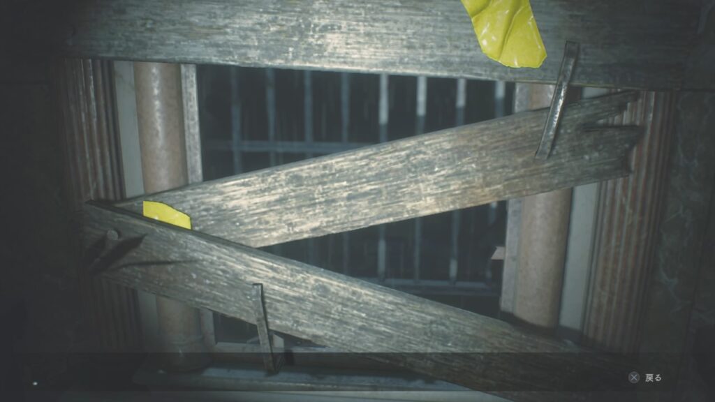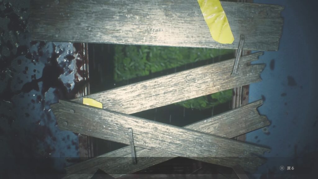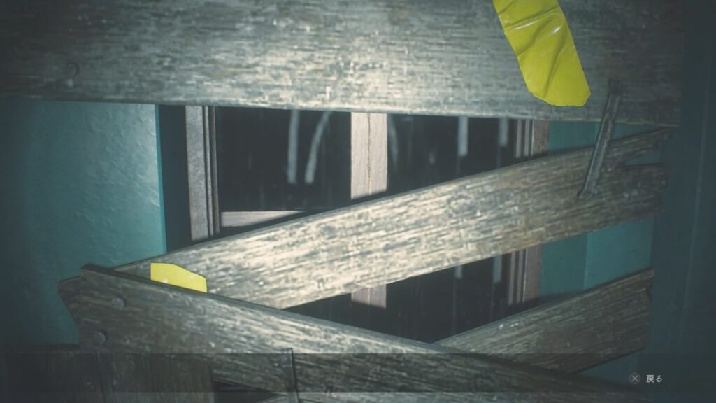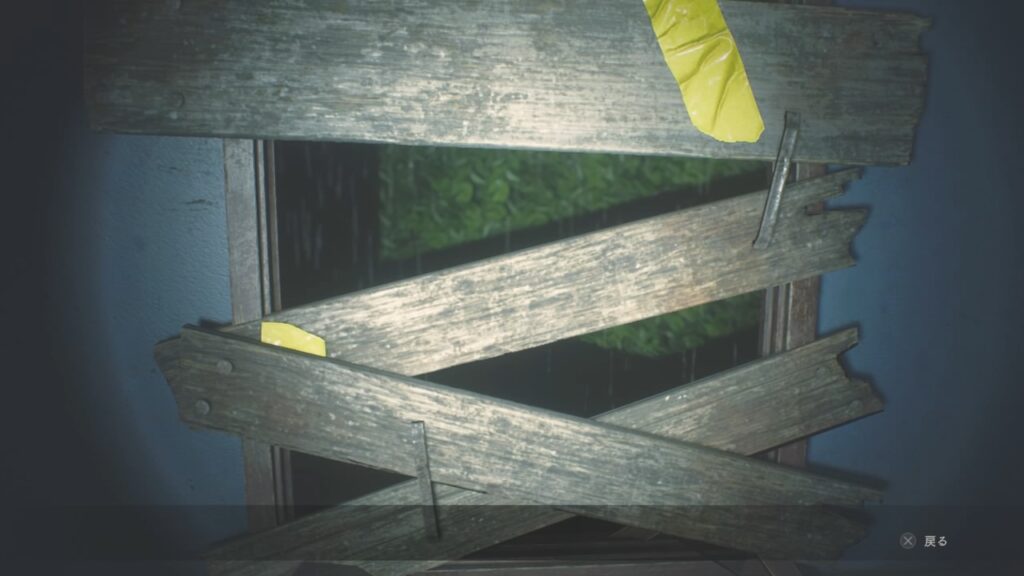 ゾンビが入って来た階段下の窓を板で封鎖!