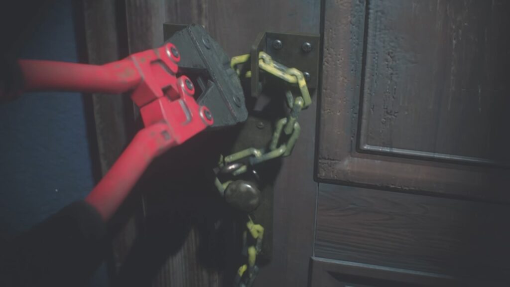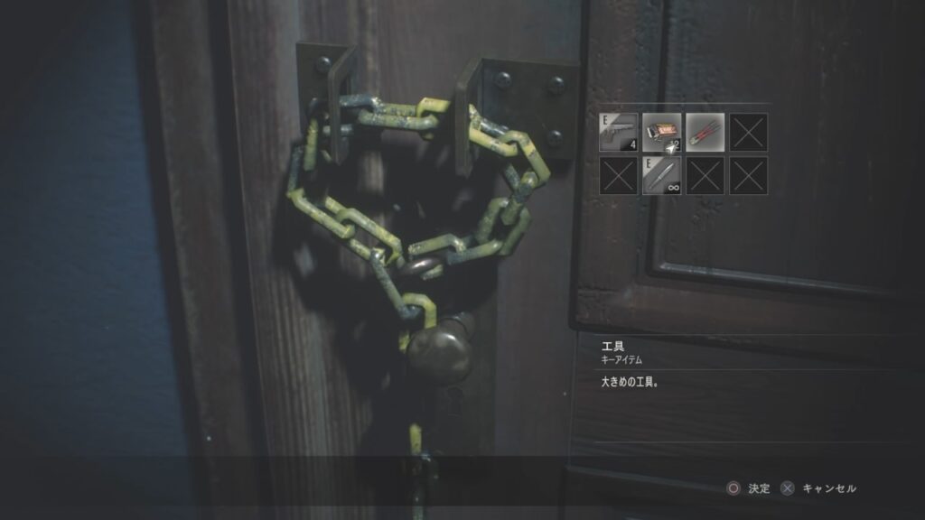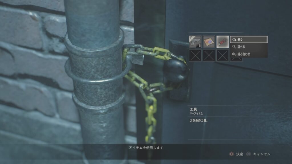 さっき拾った大きなペンチでチェーンをカット!