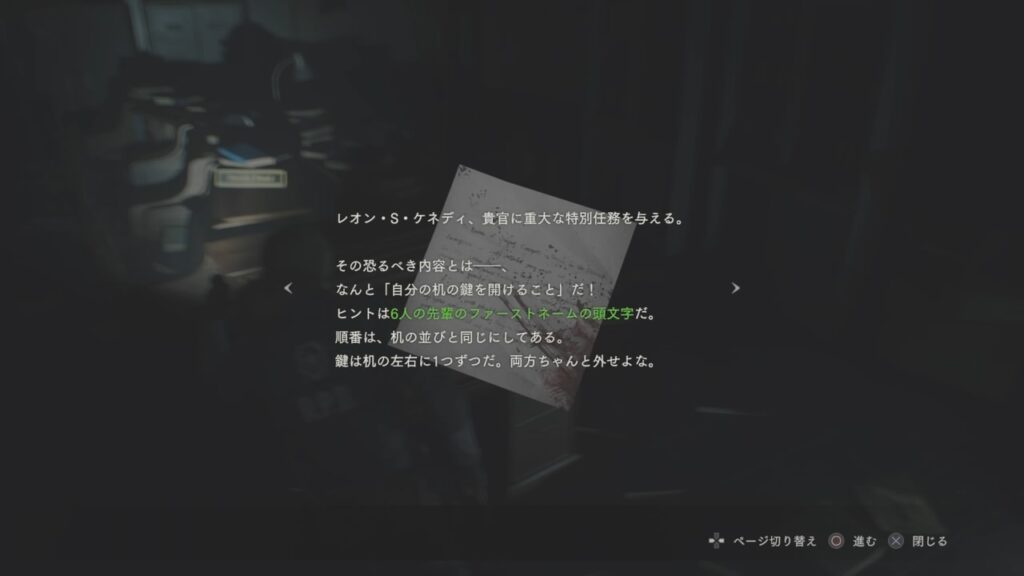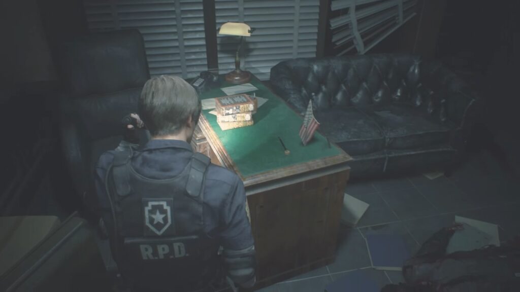もう1度、上官の部屋に戻り、その机を感慨深く眺めるレオン…。