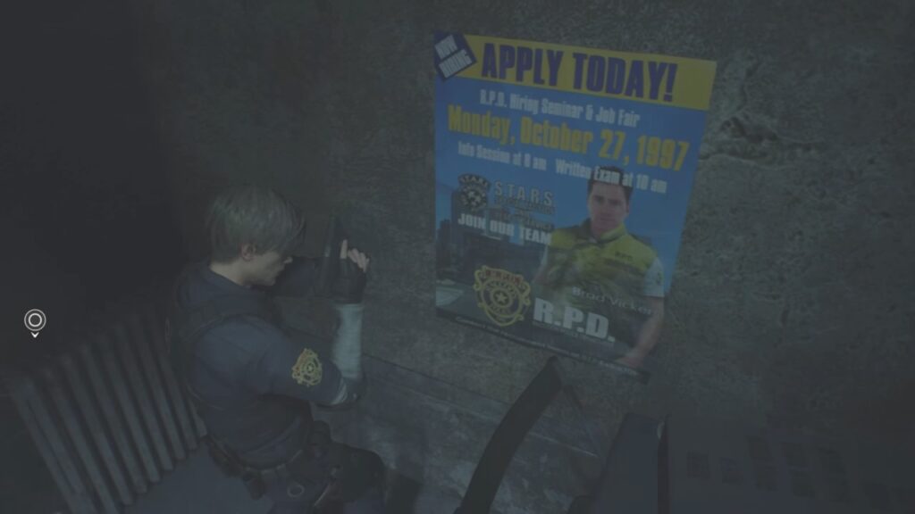 その部屋の壁には、ラクーン警察署の警察官募集のポスターが!