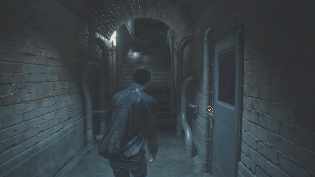 そのまま直進して階段を昇るレオン。