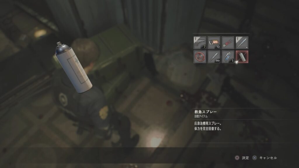 オリジナル版だと「このアイテムはもう必要ありません。捨てますか?」と表示されて、即ポイ捨てしていたレオン。